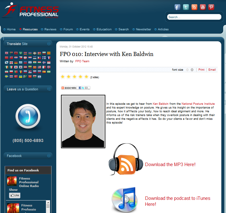 Ken Baldwin’s (the Executive Director for NPI) interview with the Fitness Professional Radio Show (October 2012)